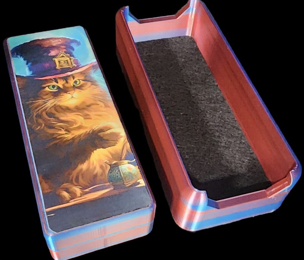 Bring your creativity to the table with a fully personalized dice crate—crafted to protect your dice and showcase your unique style. Whether you want bold colors, a sleek stripe, or your own custom artwork, we’ll make it one-of-a-kind just for you.