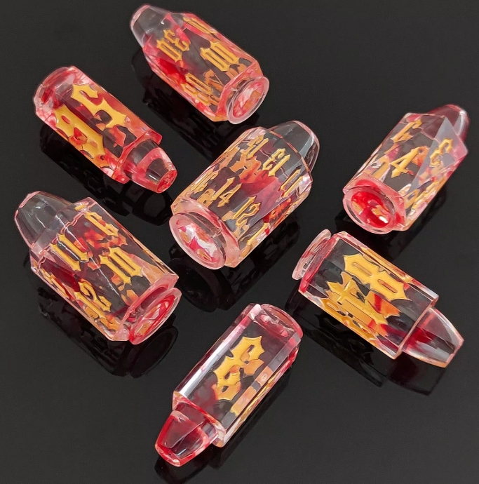Lock, load, and roll with the Arcane Bullet Dice Set, a bold and unique twist on tabletop gaming. Crafted from premium resin, each die is shaped like a sleek bullet casing, blending high-impact style with perfect rolling balance.