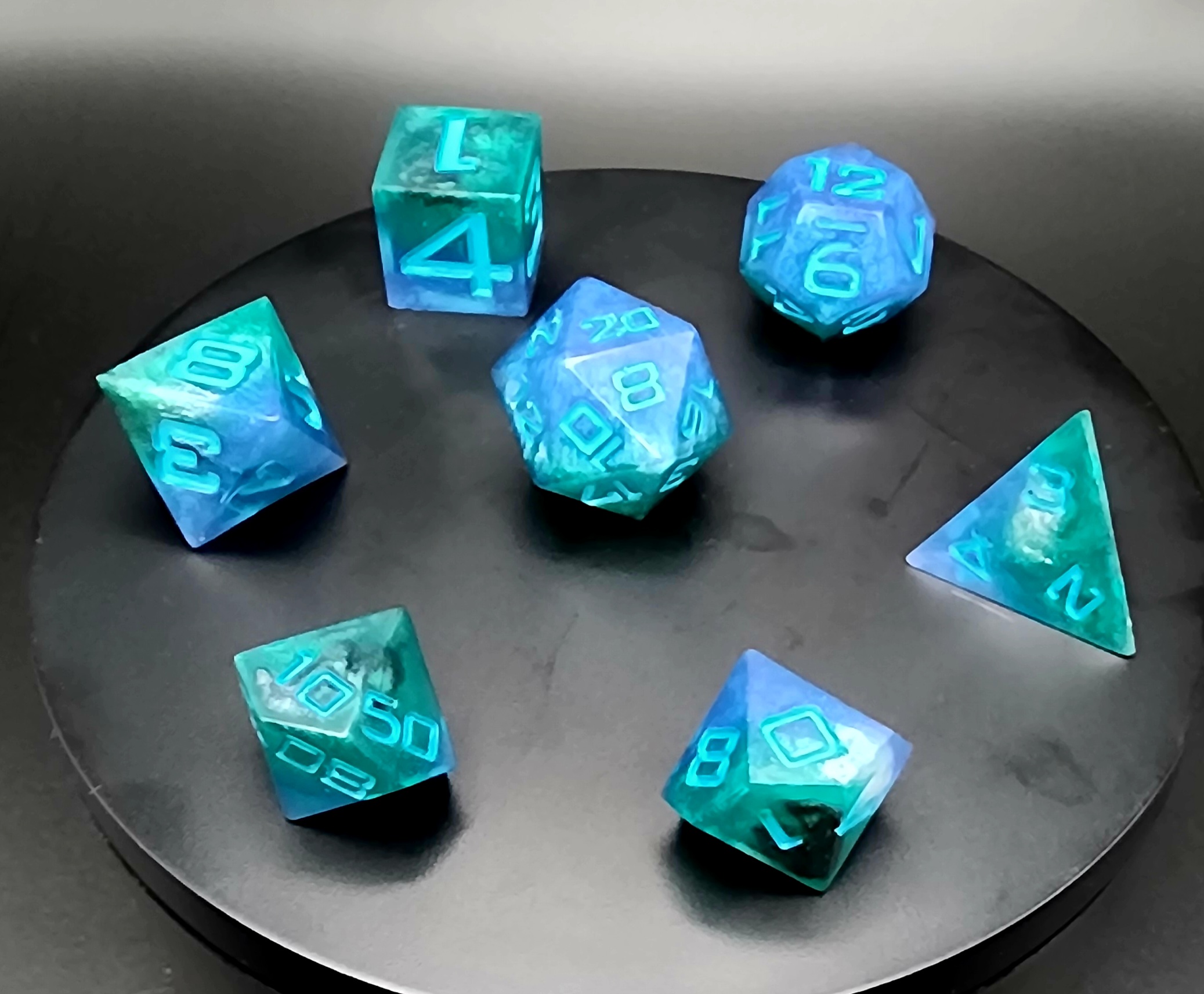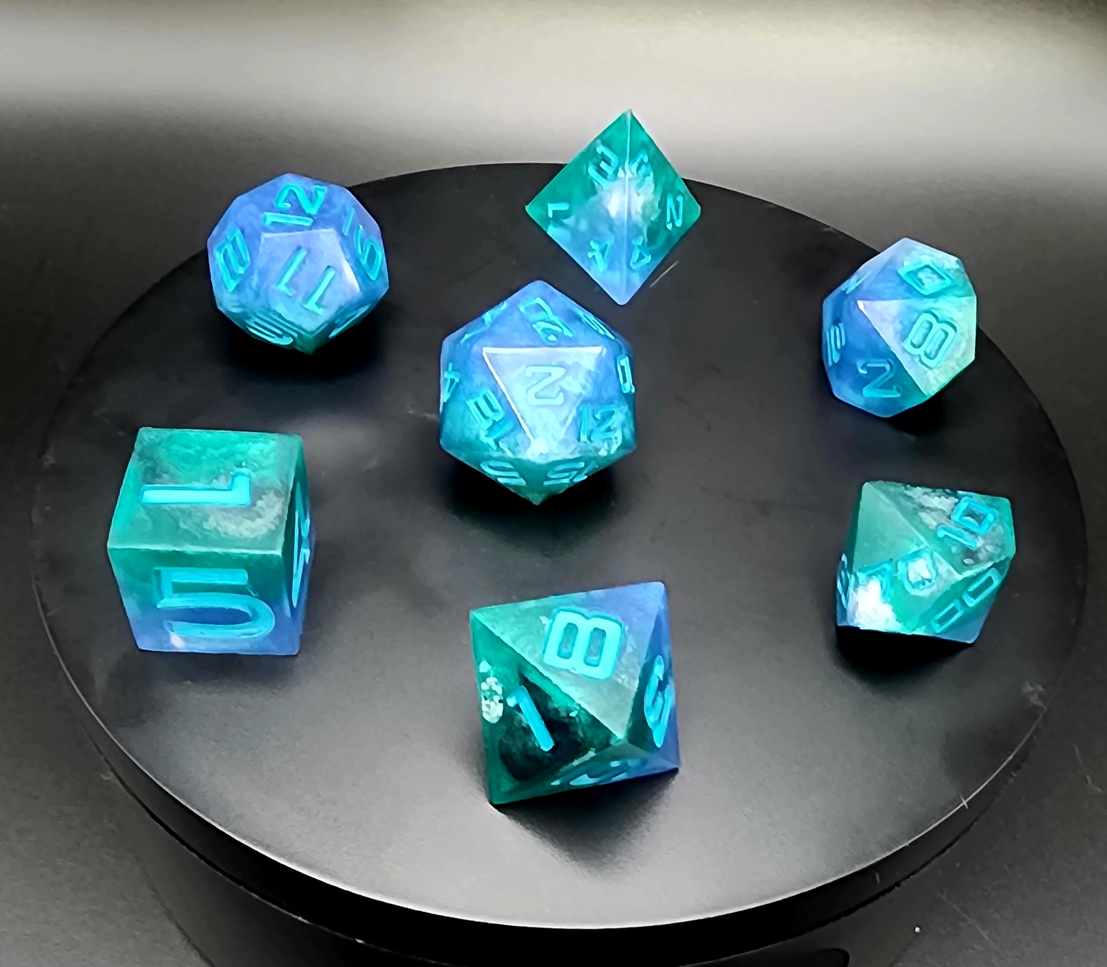 Elevate your game with this stunning 7-piece set of handcrafted resin dice, made with care, creativity, and a touch of magic. Each die is individually cast, sanded, and polished by hand, ensuring no two sets are ever exactly alike.