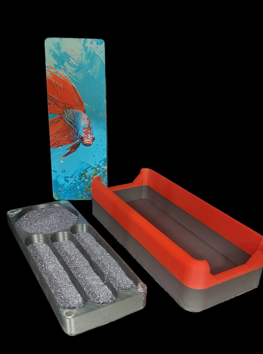 - Dice Vault with Foam Padding: The center component of the Dice Crate is lined with soft, protective foam to cradle your dice and miniatures, keeping them safe from scratches, dings, and other damage. Whether you’re storing a set of polyhedral dice or your favorite miniatures, this foam padding ensures everything stays securely in place during transport.