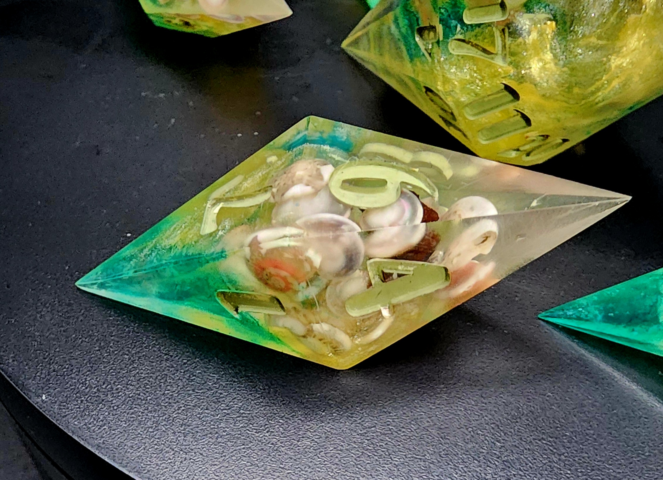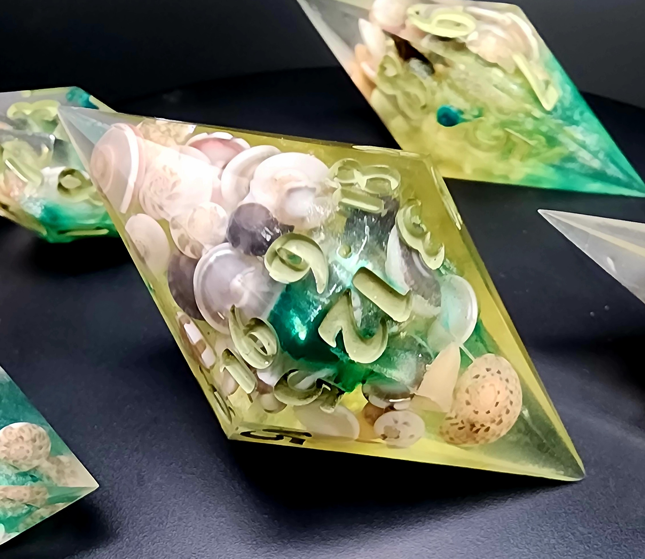 Elevate your game with this stunning 7-piece set of handcrafted resin dice, made with care, creativity, and a touch of the sea. Each die is individually cast, sanded, and polished by hand, ensuring no two sets are ever exactly alike.