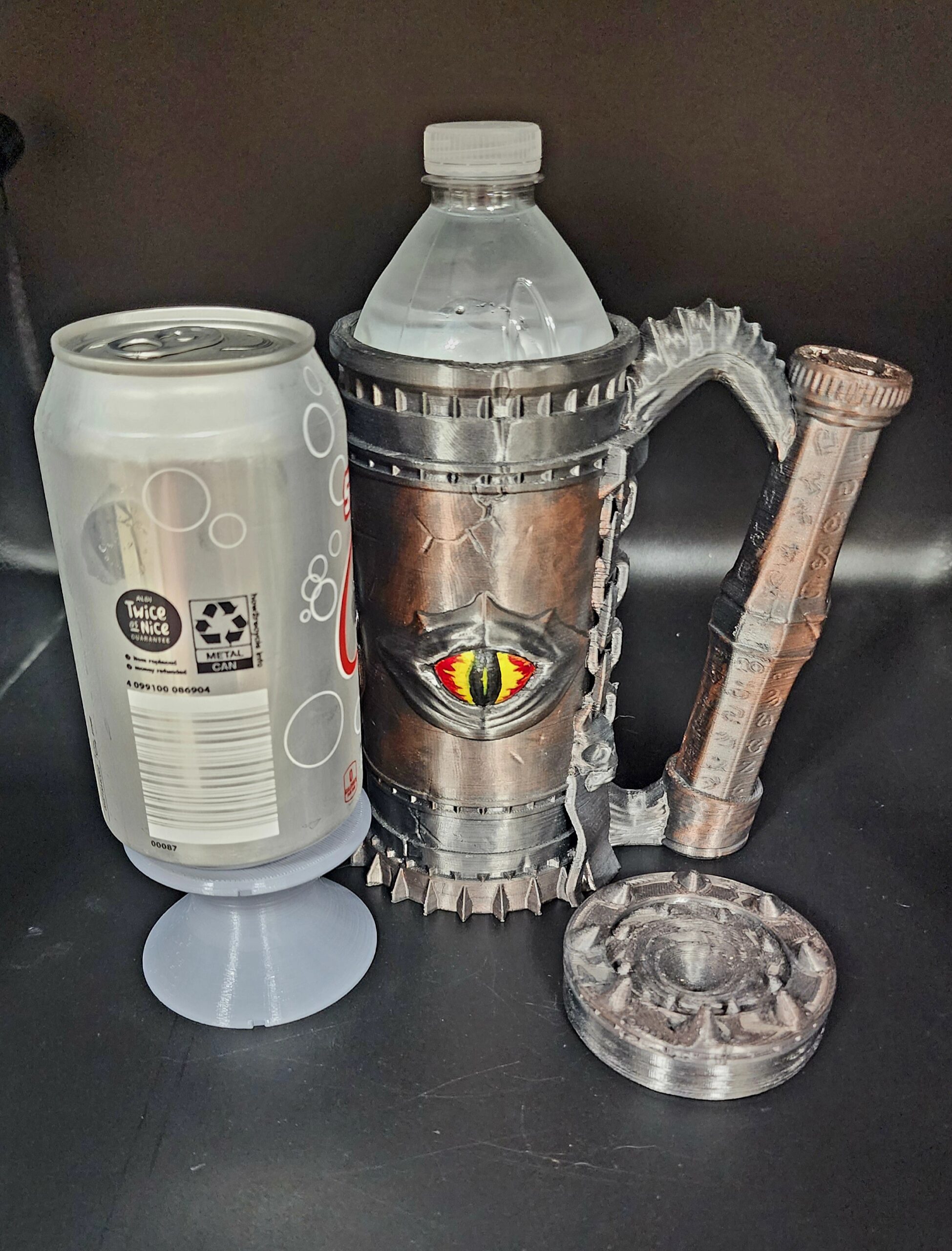 Not just for display, this tankard is designed as a dice storage holder and drink holder, able to hold 16 oz bottles or 12 oz cans with the included riser. Whether keeping your dice safe or your drink cold, the Eye of the Watcher never strays from its eternal vigil.
