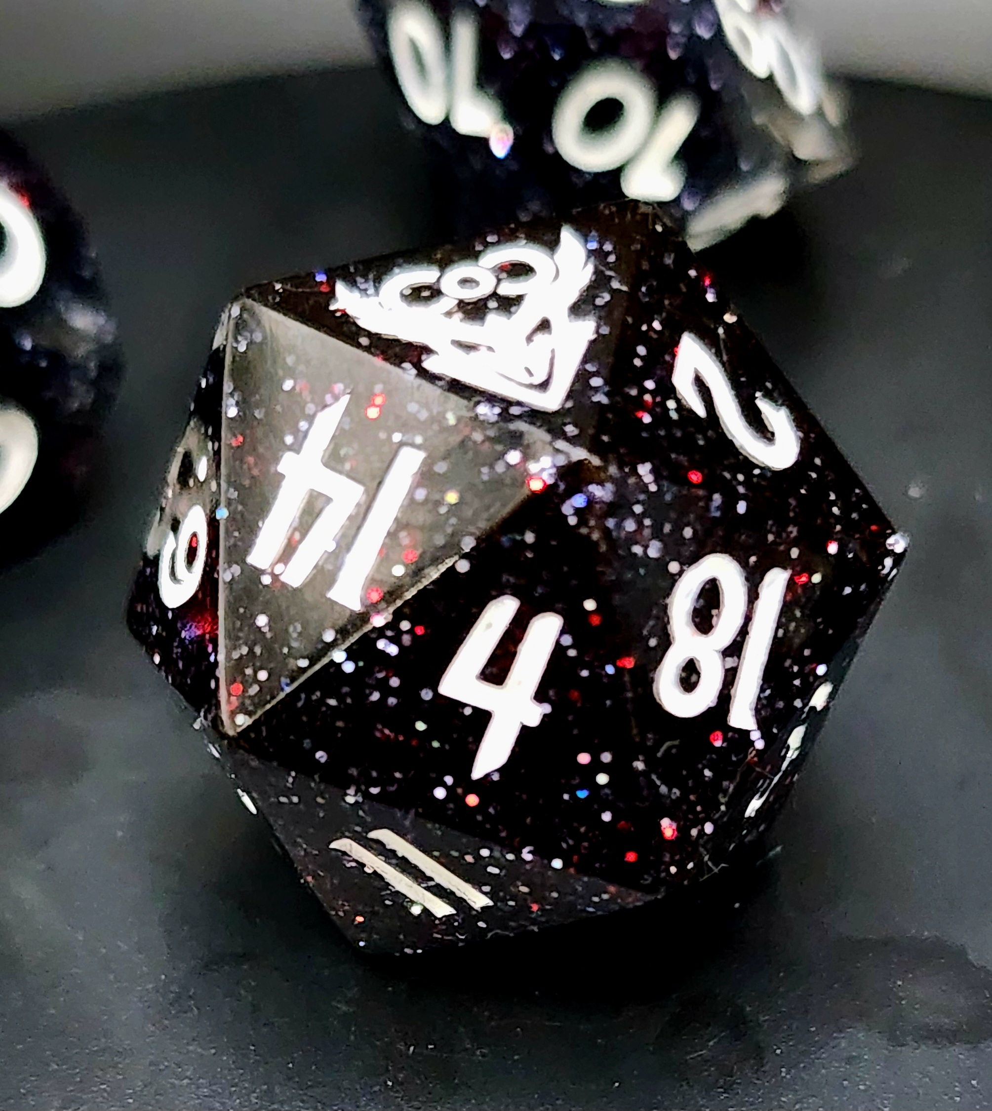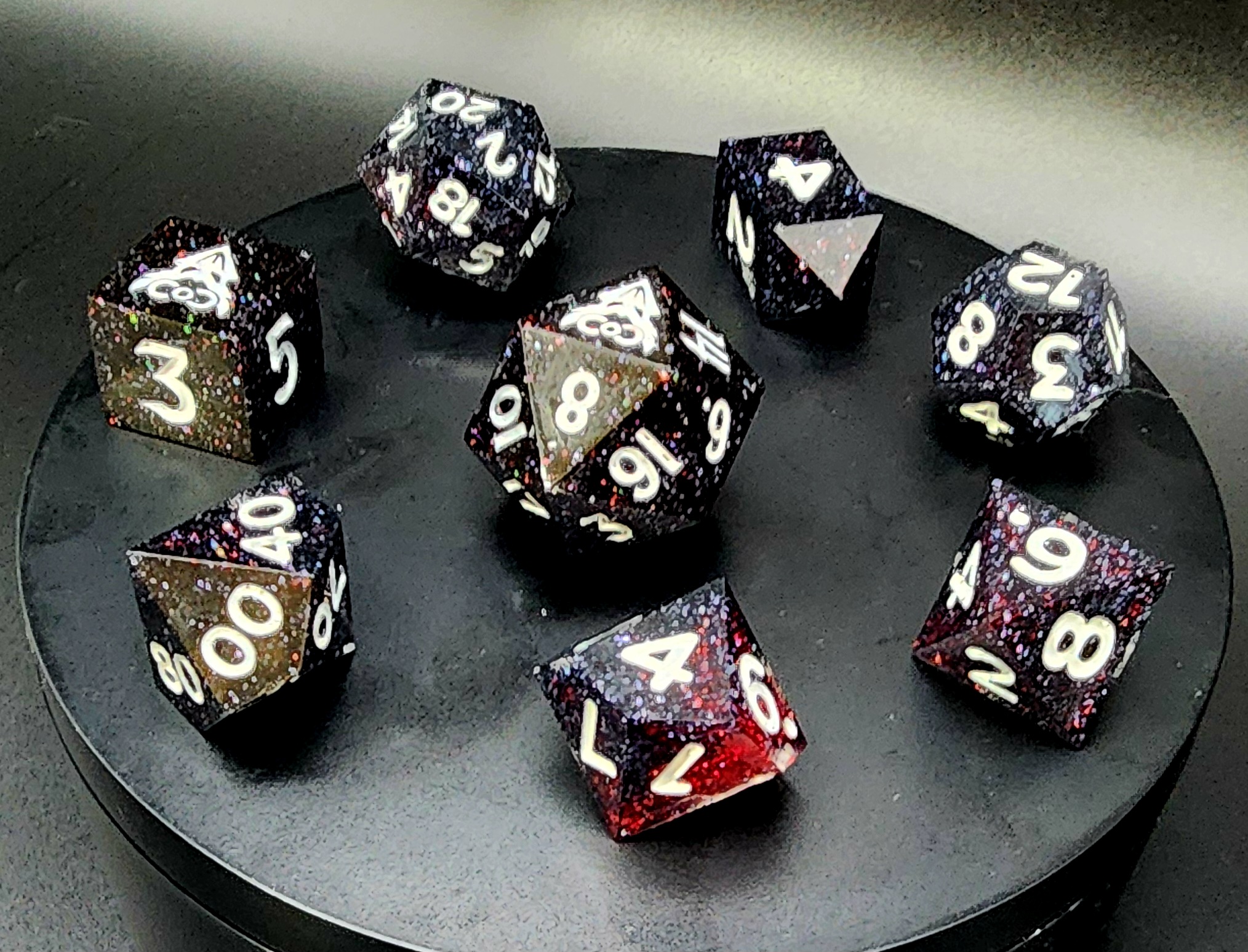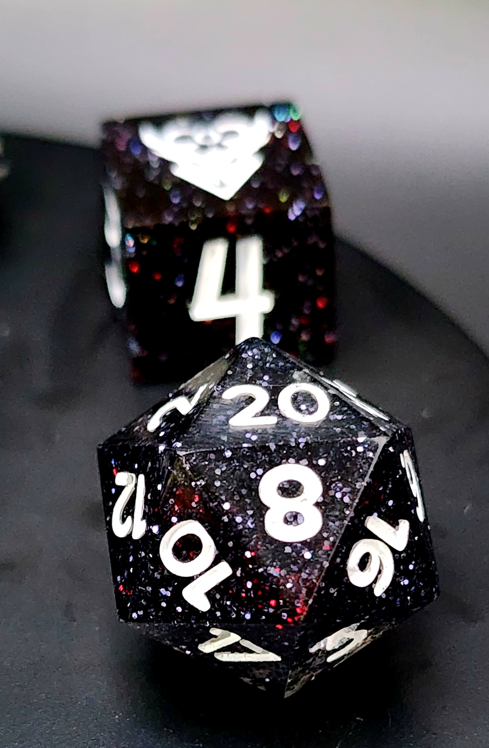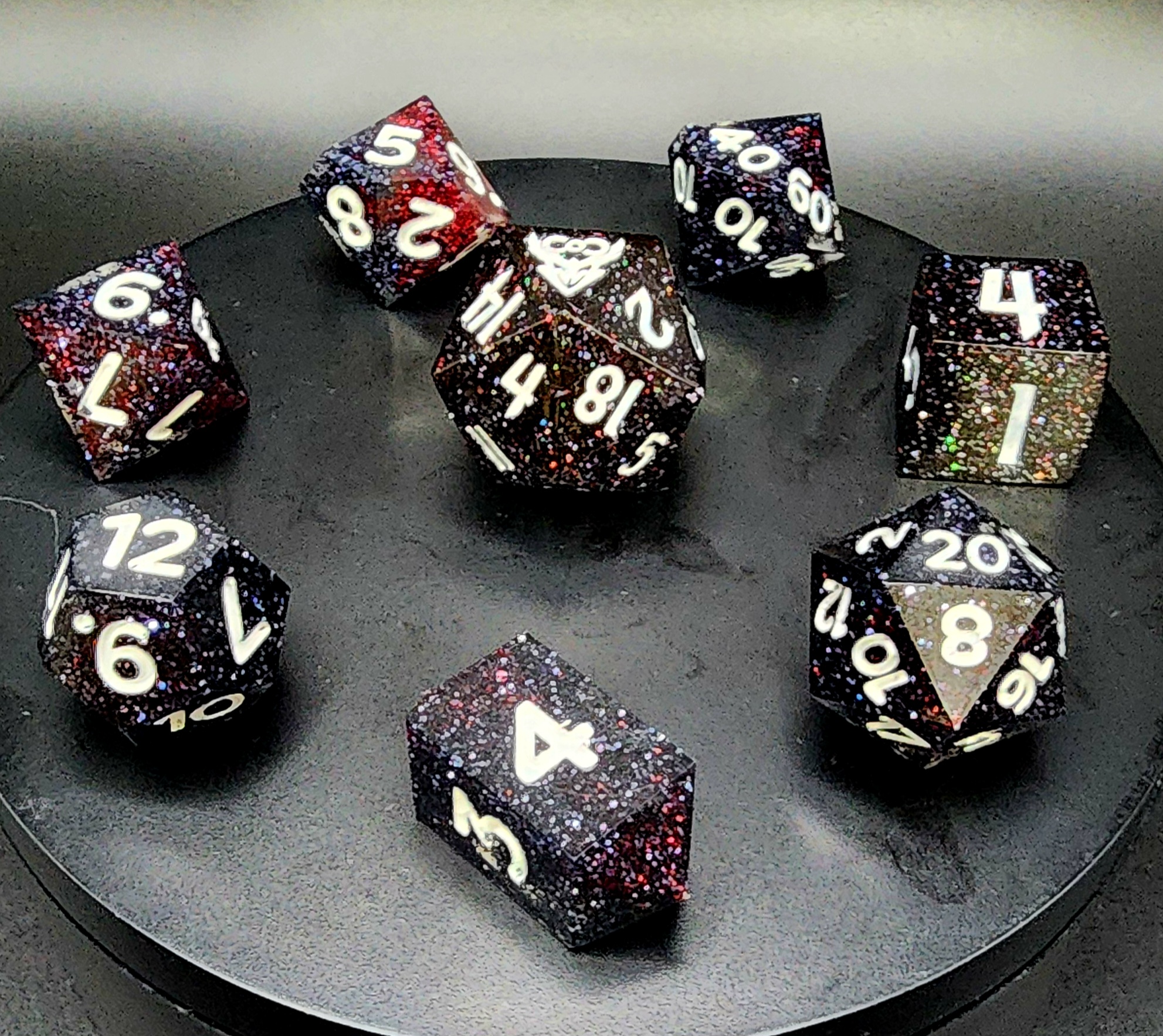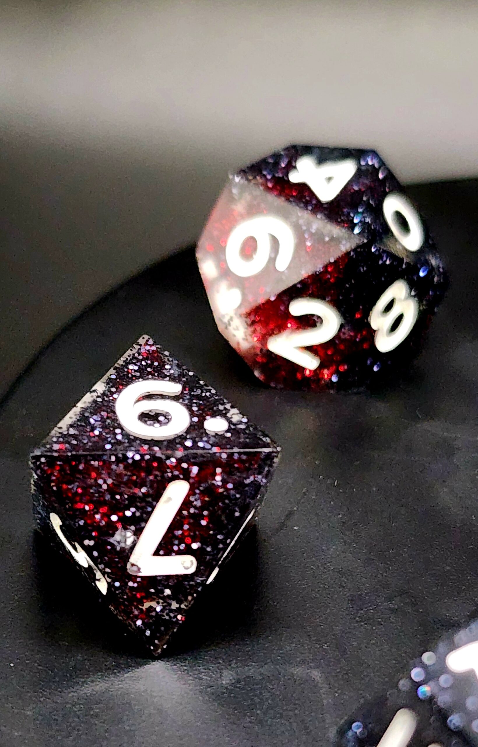 Elevate your game with this stunning 8-piece set of handcrafted resin dice, made with care, creativity, and a touch of magic. Each die is individually cast, sanded, and polished by hand, ensuring no two sets are ever exactly alike.