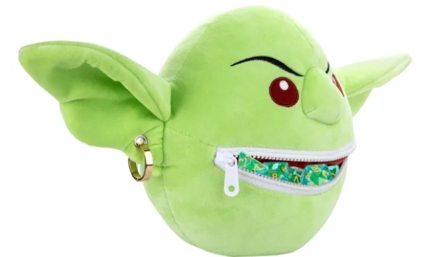 Every adventurer knows a goblin or two can’t resist shiny treasure—and now you can keep your hoard safe with one of your own! This mischievous green goblin dice bag is crafted from soft plush fabric and shaped like a classic fantasy monster, complete with big ears, bold brows, and a toothy zipper grin.