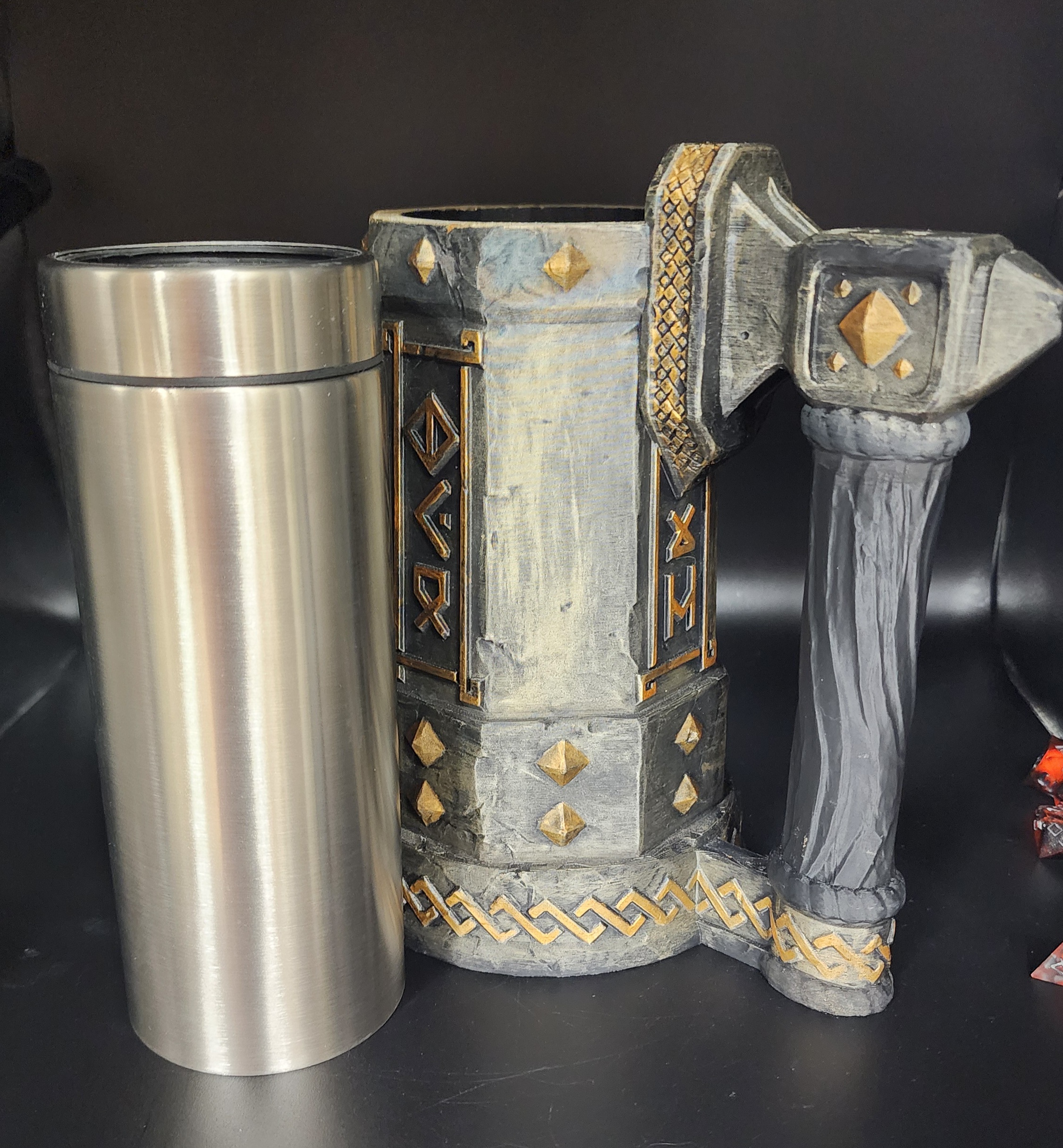 Hand-painted, 3D-printed design with rune accents