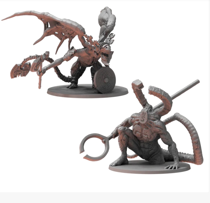 Inside this box is everything you need to add a Titanite Demon and Stone Gargoyle to your campaigns, with two huge, highly detailed minis on 75mm bases, and two 5e-compatible stat cards.